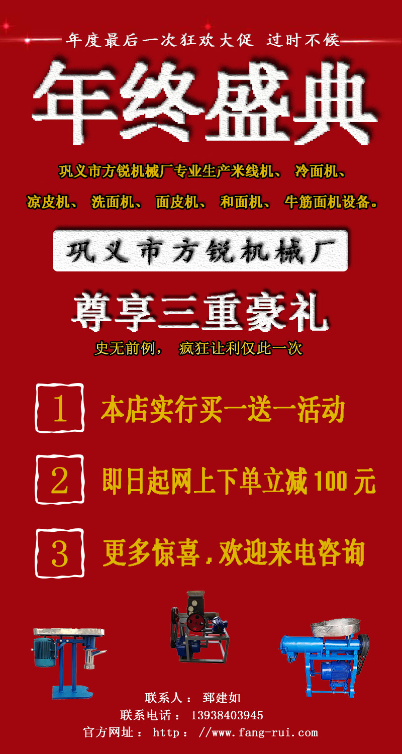 鞏義市方銳機(jī)械廠專注二十年品質(zhì)保證,積累數(shù)千家客戶安裝經(jīng)驗(yàn),完全是您的理想合作伙伴!如果您正在關(guān)注米線機(jī)設(shè)備,想了解更多關(guān)于米線機(jī)設(shè)備的相關(guān)信息,請(qǐng)拿起您的電話,撥打方銳機(jī)械全國(guó)咨詢熱線:0371-64365751 13937165661 行動(dòng)吧,時(shí)間讓您得到更多您需要的技術(shù)信息,為您節(jié)省寶貴時(shí)間。方銳機(jī)械會(huì)給您帶來(lái)更多驚喜,與您攜手共創(chuàng)未來(lái)!
